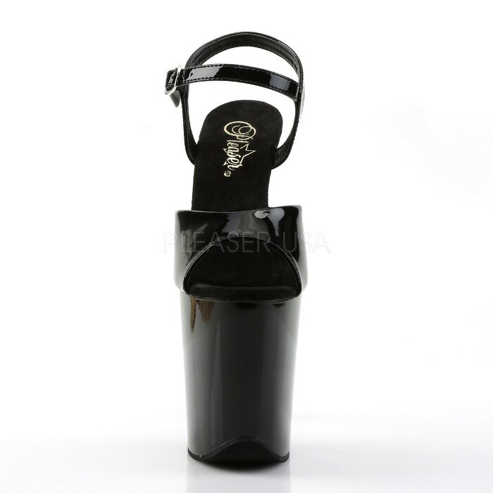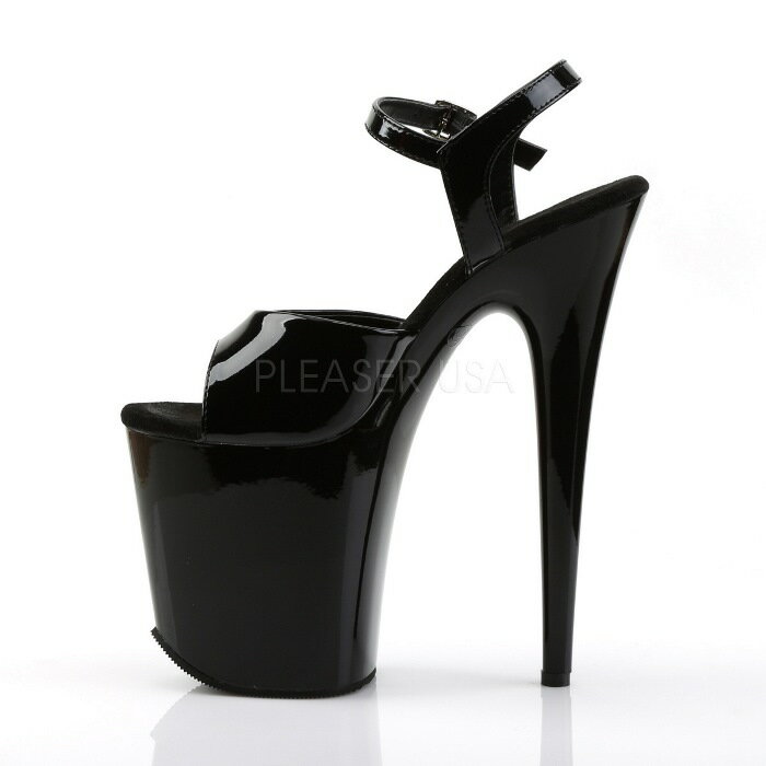 取寄せ靴 PLEASER プリーザー サンダル レディース メンズ 約20cm ハイヒール 約10cm ストーム 厚底サンダル オープントゥ アンクル ストラップ 黒 ブラック エナメル 大きいサイズあり 21.5 22 22.5 23 23.5 24 24.5 25 25.5 26 26.5 27 27.5 28 cm センチ