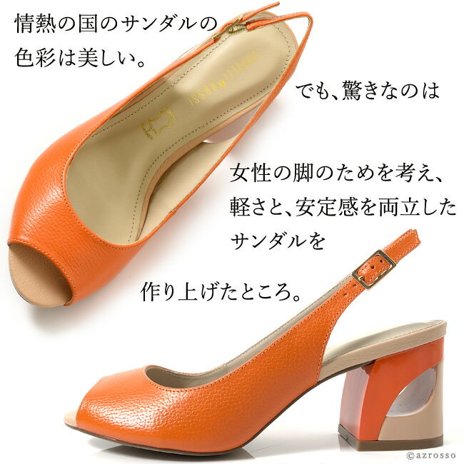 バック ストラップ サンダル レザー 本革 レディース 疲れない チャンキー ヒール 6cm イエロー 黄色 オレンジ グリーン 太ヒール 幅広 夏 小さいサイズ 22cm 大きいサイズ 25cm