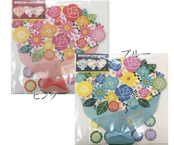 【商品仕様】 ・サイズ:280×255ミリ(色紙部分折りたたみ時) ・素材:紙(色紙/シール/封筒)、ポリエステル(リボン) ・セット内容:色紙×1枚、封筒×1枚、メッセージシール×24枚 ・色:ピンク、ブルー ★