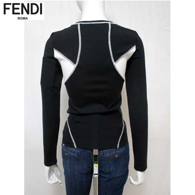 フェンディ FENDI レディース Tシャツ トップス ロンT 長袖 ロゴ 2color FENDIロゴ入り長袖タイトTシャツ 黒/白 FAF112 A8WK F0RWK/F0ZNE (R58000)【送料無料】【smtb-tk】 91A